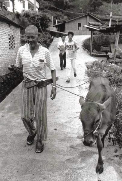帶著步勁(刀),要去河邊砍草放牛.